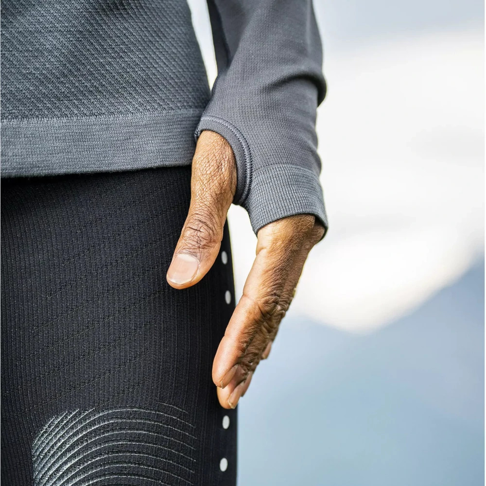 Van, hogy egy réteg ruha is elegendő, még akár a téli hidegben is. A Compressport Winter Trail Postural LS Top hosszú ujjú sportfelső poliamid és gyapjúszálak összeszövésével készítették testtérkép technológiával. Az eredmény a márkától az eddigi legjobb hőháztartást szabályozó ruhadarab lett. A test legtöbb meleget igénylő gyorsabban hűlő pontjain puha gyapjú szövet érintkezik a bőrrel, amit a poliamid szövet borít. A kevésbé kényes területeken a rétegezés fordított, hogy ne melegedj túl nagyobb teljesítményleadás közben. Lézervágott nyílások, szellőzőpanelek és a 3/4-es cipzár segít a párologtatásban és testhőd pontos beállításában. Mozgásszabadságod a teljes mértékben megőrizheted, hála a rugalmas ujjkialakításnak. További védelmet nyújt még a magasított nyaka és hosszított, hüvelykujjgyűrűvel ellátott ujjai. És Mind ezek mellett a Compressport Spin Control technológiáját is tartalmazza, ami segít a megfelelő testtartás megtartásában. A Compressport Winter Trail Postural LS Top hosszú ujjú sportfelső a tökéletes választás a téli veszedelmek átvészelésére.