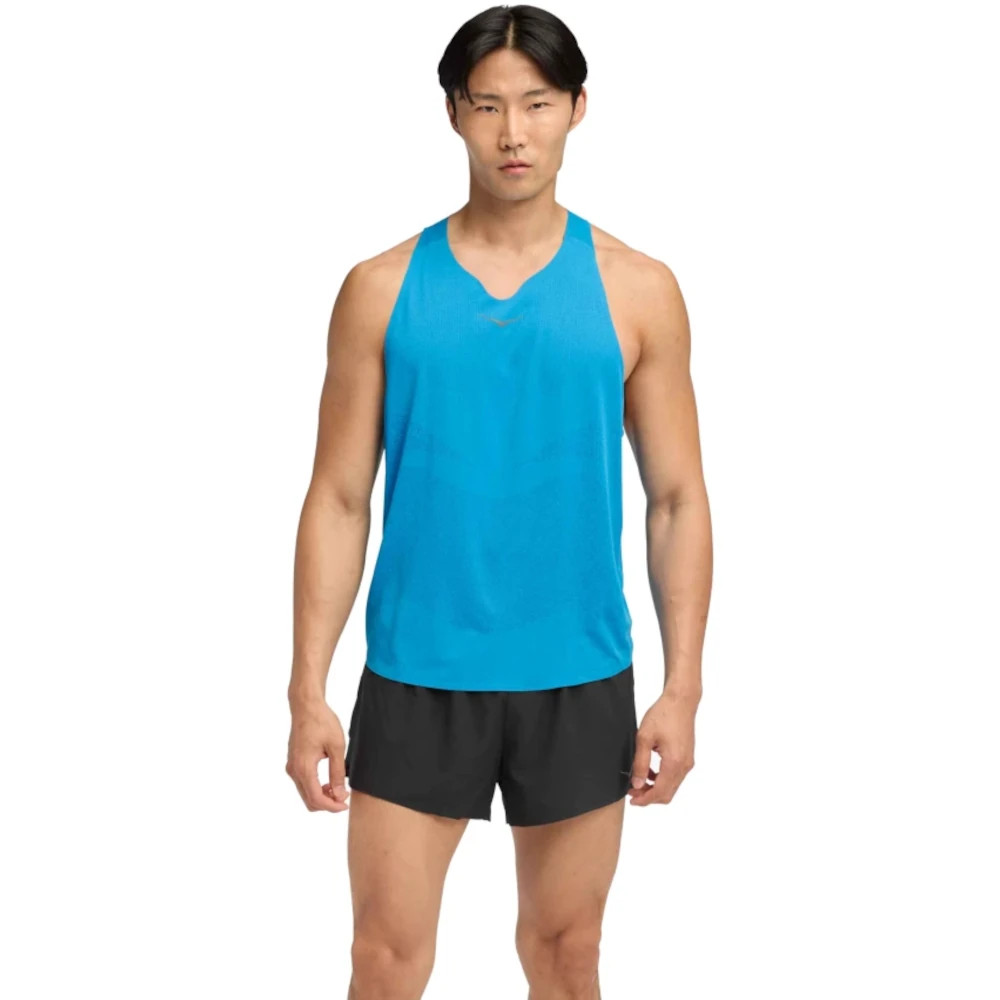 A pillekönnyű Hoka Race Day Singlet futótrikó egyedileg fejlesztett jacquard kötésű anyagának stratégiai területeken elhelyezett perforációs részei fokozott légáteresztőképességet tesznek lehetővé. Slim-fit szabású trikó, melynek anyaga elvezeti az izzadságot és megakadályozza a kellemetlen szagok kialakulását; az olyan versenynapokra finomhangolt részletek, mint pl. a ragasztott karkivágás szegélyek, pedig kényelmes és kidörzsölésmentes viseletet garantálnak még a legnagyobb kihívást tartogató megmérettetéseken is.