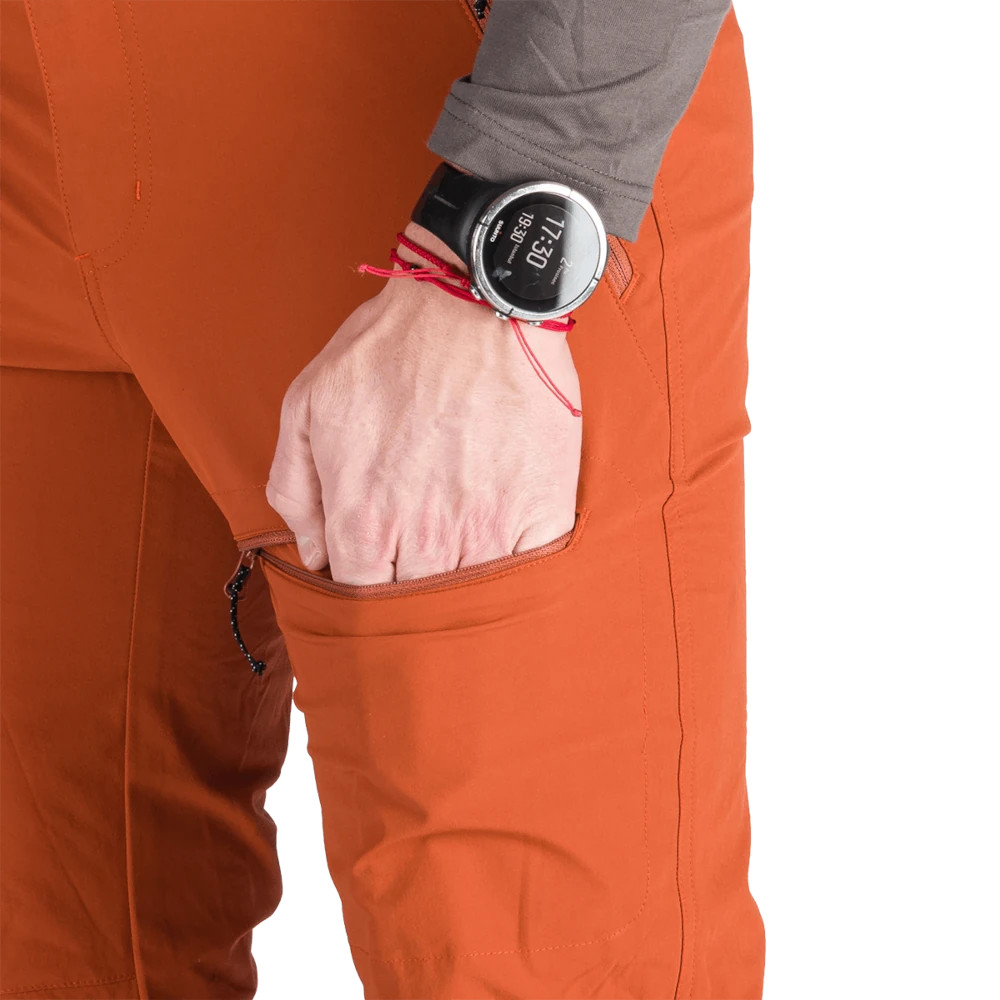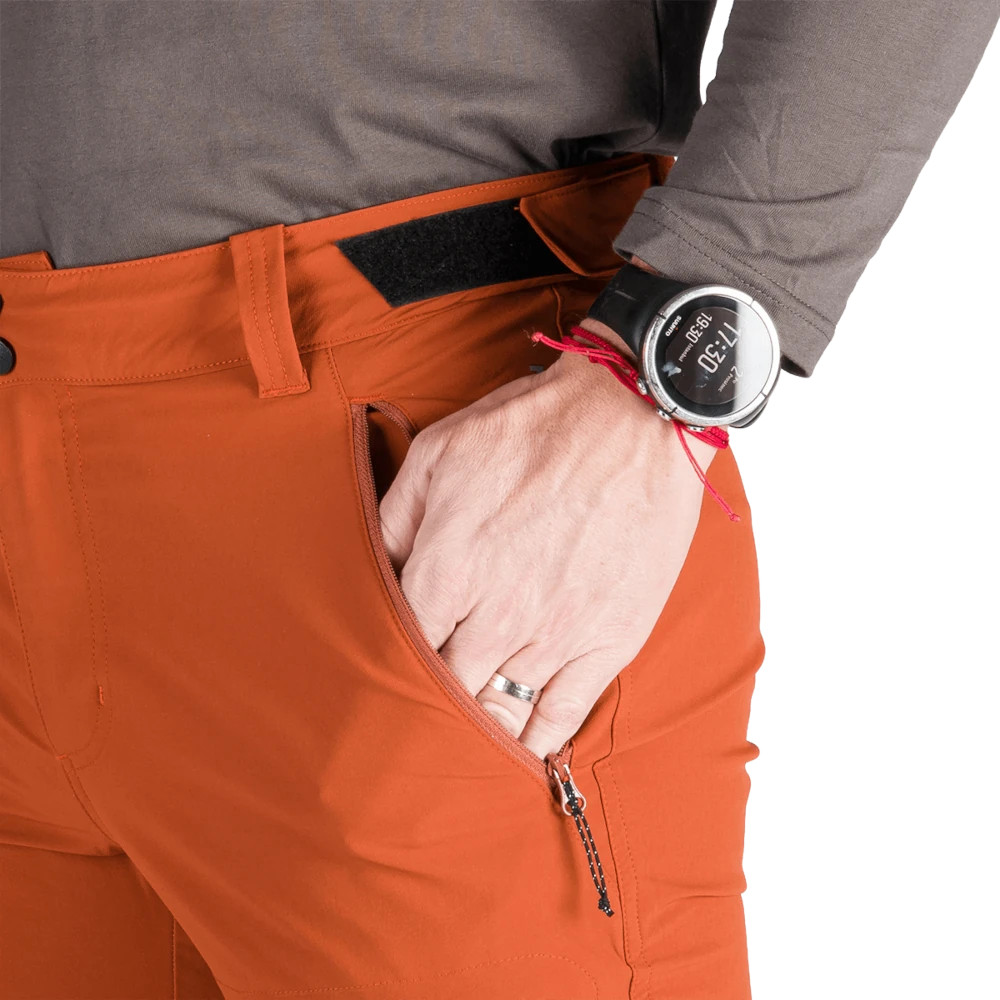 A nadrág két elülső-, egy hátsó- és egy cipzáras combzsebbel rendelkezik, melyekben biztonságosan tárolhatsz minden, elengedhetetlenül fontos apró tárgyat. Az állítható alsó szegély és az övvel, valamint övbújtatókkal ellátott derékrész gondoskodnak róla, hogy a nadrág tökéletesen illeszkedjen és jól alkalmazkodjon a különböző körülményekhez.