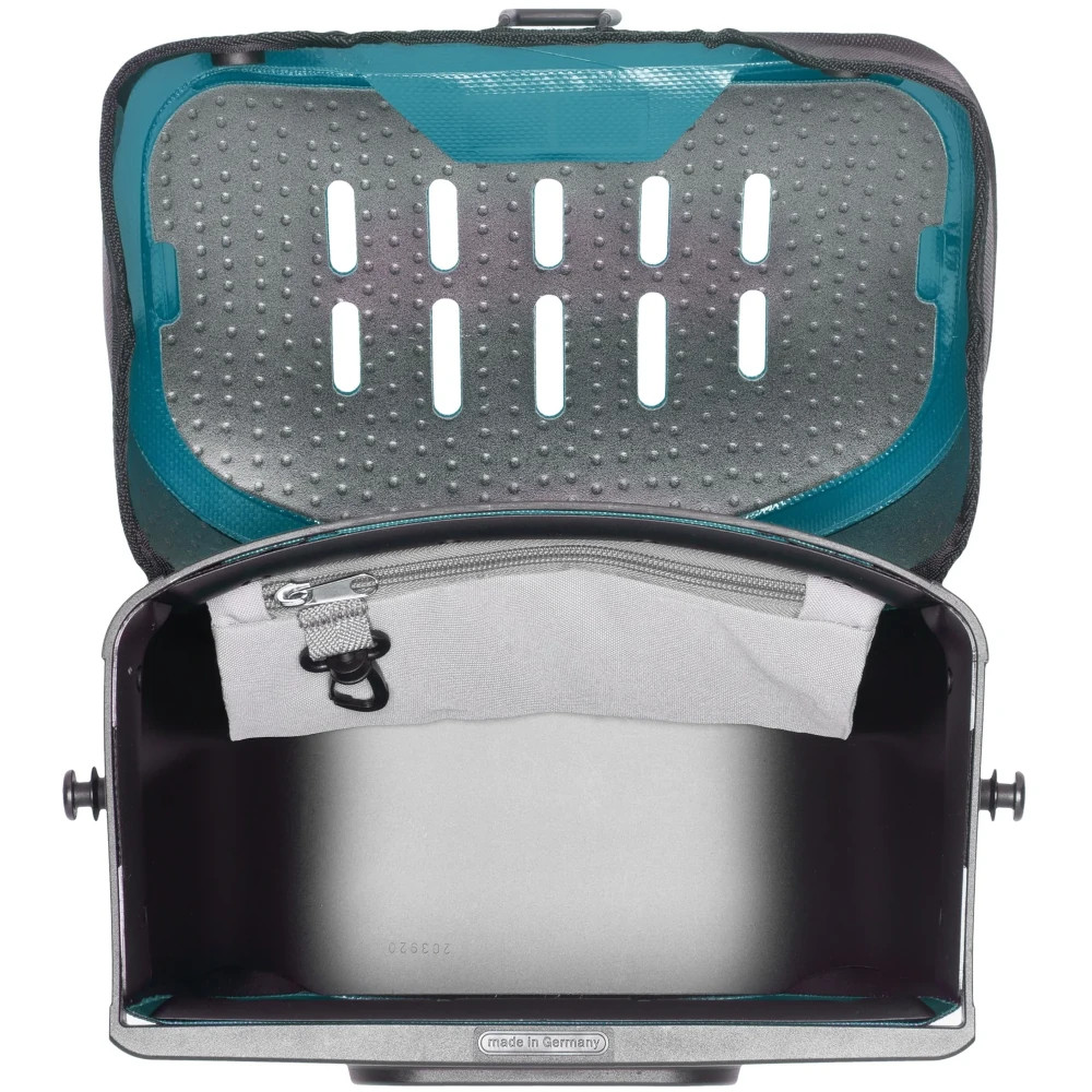 Az Ortlieb Ultimate Six Classic kerékpáros kormány-, és válltáska fedele egy kézzel is könnyen nyitható a mágneses záródásának köszönhetően, visszacsukása pedig szinte már automatikus. Amikor megérkeztél a célodhoz, a leszedhető vállpántnak köszönhetően válltáskává alakíthatod és magaddal viheted a legfontosabb értékeiddel együtt. Belül egy nagy rekesz található tároláshoz egy kis cipzáras zsebbel és kulcsakasztóval. A táska anyaga strapabíró poliészter vízálló poliuretán laminálással. A táska minden Ortlieb rögzítőrendszerrel és Rixen & Kaul Klickfix rendszerrel egyaránt kompatibilis.