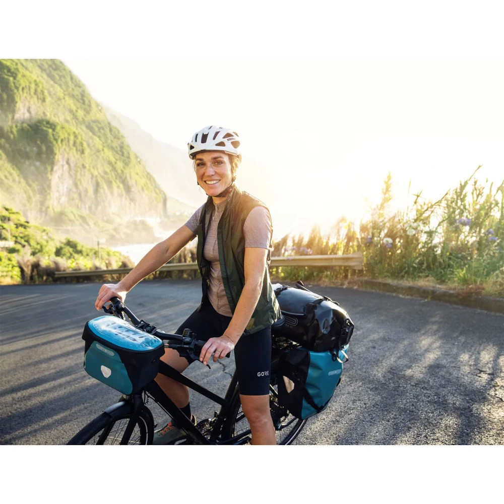 A tartós és vízálló poliészterből készült Ortlieb Ultimate Six Classic kormánytáska egy megkerülhetetlen darab, ami kulcs szerepet játszik minden kerékpártúra rajongó felszerelés összeállítási tervében. Tökéletes megoldást kínál arra, hogy pénztárcádat, telefonodat, kulcsodat, egyéb értéktárgyaidat és azokat a fontos apróságaidat tárold benne, amik jó ha kéznél vannak út közben. Átlátszó és vízálló fedélrekesze elegendő helyet biztosít telefon, GPS és térkép kényelmes tárolására, ami így menet közben is jól látható, mégis por és vízmentes helyen van. Természetesen az átlátszó borításon keresztül, gond nélkül kezelheted érintőkijelzős eszközeidet.