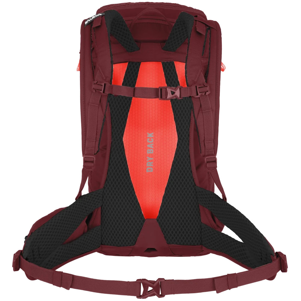 A zsák vadonatúj Dry Back Air hátrendszere speciálisan arra lett tervezve, hogy hátadat minden körülmények között szárazon tartsa. A gyártó által alkalmazott korábbi konstrukciókhoz képest úgy lett 26%-kal kisebb az érintkezési felület, hogy a terhelés eloszlása optimális maradt. A légáteresztő anyagokat használó, beépített szellőzőrendszer még nagyobb levegőáramlást tesz lehetővé a hátnál. 15 percnyi aktivitás után az új Dry Back Air rendszer használatával, a Salewa által előzőleg alkalmazott Air Fit rendszerhez képest 1,5 °C-kal alacsonyabb mérhető hőmérsékletet érhetünk el a hát és a hátizsák között. A könnyű, osztott vállpántok nagyobb mozgásszabadságról gondoskodnak valamint azáltal, hogy kisebb felületen érintkeznek a testtel fokozott levegőáramlást tesznek lehetővé ami támogatja az izzadási folyamatok optimális szinten tartását, nagyobb kényelmet biztosítva így. Twin Compression System (TCS) rendszere lehetővé teszi, hogy a hátizsákot tökéletesen összehúzva közel tartsd a terhelést a hátadhoz, ami nélkülözhetetlen a stabil, magabiztos mozgáshoz. Kialakításának köszönhetően gyorsan és egyszerűen igazíthatjuk a beállításokat a zsák megváltozott térfogatához, például amikor kiveszünk vagy beteszünk egy-egy plusz réteg ruhát utunk során.