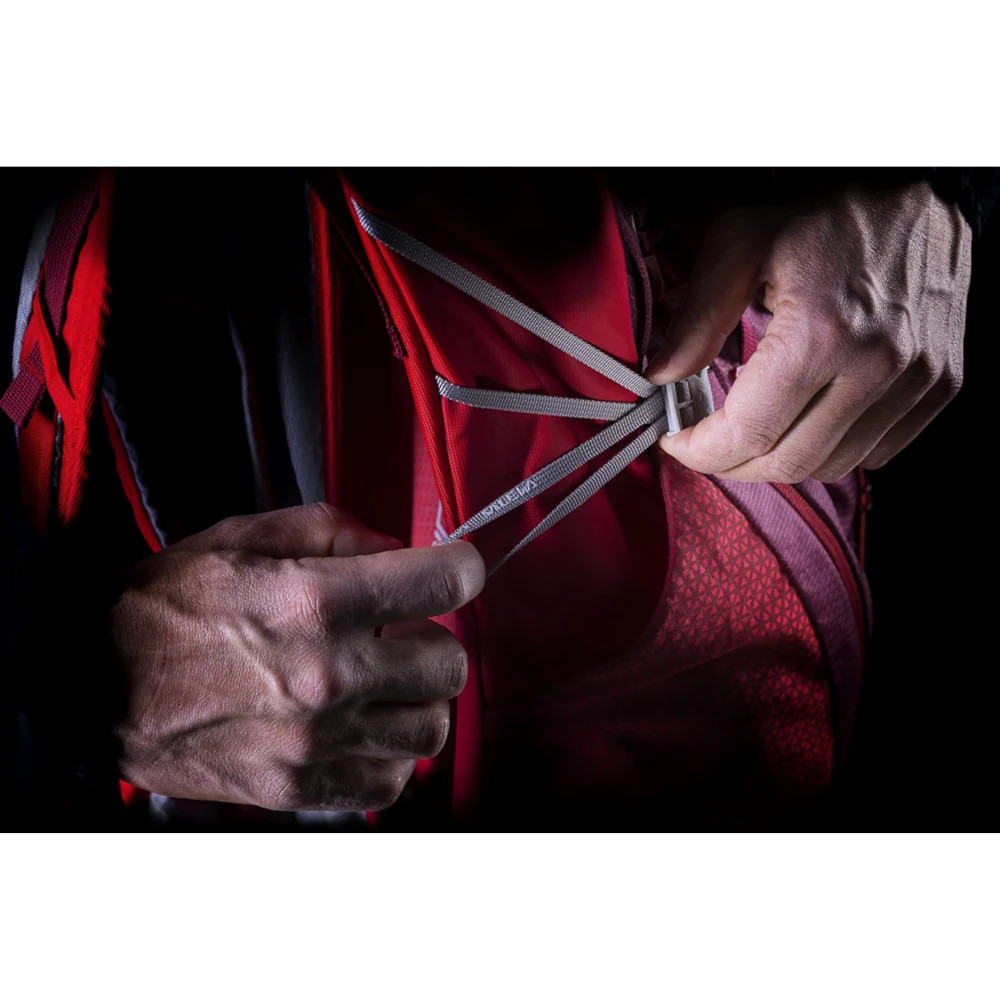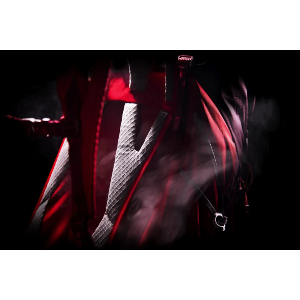A zsák vadonatúj Dry Back Air hátrendszere speciálisan arra lett tervezve, hogy hátadat minden körülmények között szárazon tartsa. A gyártó által alkalmazott korábbi konstrukciókhoz képest úgy lett 25%-kal kisebb az érintkezési felület, hogy a terhelés eloszlása optimális maradt. A légáteresztő anyagokat használó, beépített szellőzőrendszer még nagyobb levegőáramlást tesz lehetővé a hátnál, így már 15 percnyi aktivitás után 1,6 °C-kal alacsonyabb mérhető hőmérsékletet érhetünk el a hát és a hátizsák között. A könnyű, osztott vállpántok nagyobb mozgásszabadságról gondoskodnak, valamint azáltal, hogy kisebb felületen érintkeznek a testtel fokozott levegőáramlást tesznek lehetővé, ami támogatja az izzadási folyamatok optimális szinten tartását, nagyobb kényelmet biztosítva így. Twin Compression System (TCS) rendszere lehetővé teszi, hogy a hátizsákot tökéletesen összehúzva közel tartsd a terhelést a hátadhoz, ami nélkülözhetetlen a stabil, magabiztos mozgáshoz. Kialakításának köszönhetően gyorsan és egyszerűen igazíthatjuk a beállításokat a zsák megváltozott térfogatához, például amikor kiveszünk vagy beteszünk egy-egy plusz réteg ruhát utunk során.