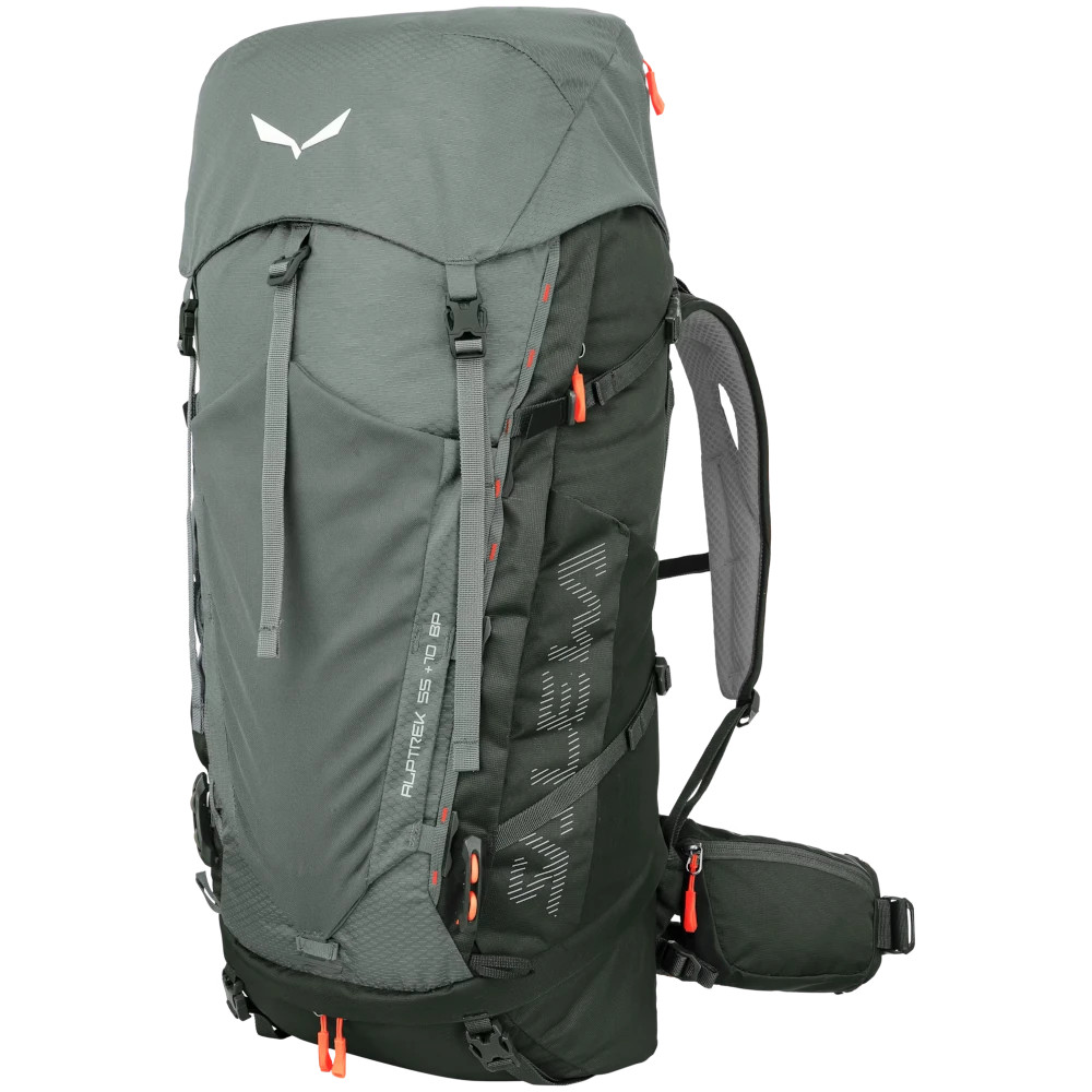 A Salewa egyszerűen használható Dry Back Custom hordozórendszerének háthosszúsága állítható; anatómiailag formázott, párnázott vállpántjai és csípőöve pedig személyreszabott illeszkedést tesztnek lehetővé. A teheremelő hevederek optimális hát illeszkedést biztosítanak a hosszú távokon, míg az előre formázott csípőtámasz precíz illeszkedést és remek terhelésátvitelt garantál. Nagy tárolózsebei bőséges helyet kínálnak tartalék ruházatnak, vagy éppen sátorcöveknek. A főrekesz kettős – elülső és felső – hozzáférhetőséggel rendelkezik; a gyors, útközbeni hozzáférést igénylő fontos tárgyaknak pedig a hátizsák levétele nélkül is könnyen elérhető zsebek kínálnak helyet. A zsák számos egyéb praktikus funkcióval rendelkezik, többek között esővédőhuzattal; levehető, rugalmas eszközrögzítő zsinórral és derékalj rögzítésére szolgáló pántokkal is ellátta a gyártó.