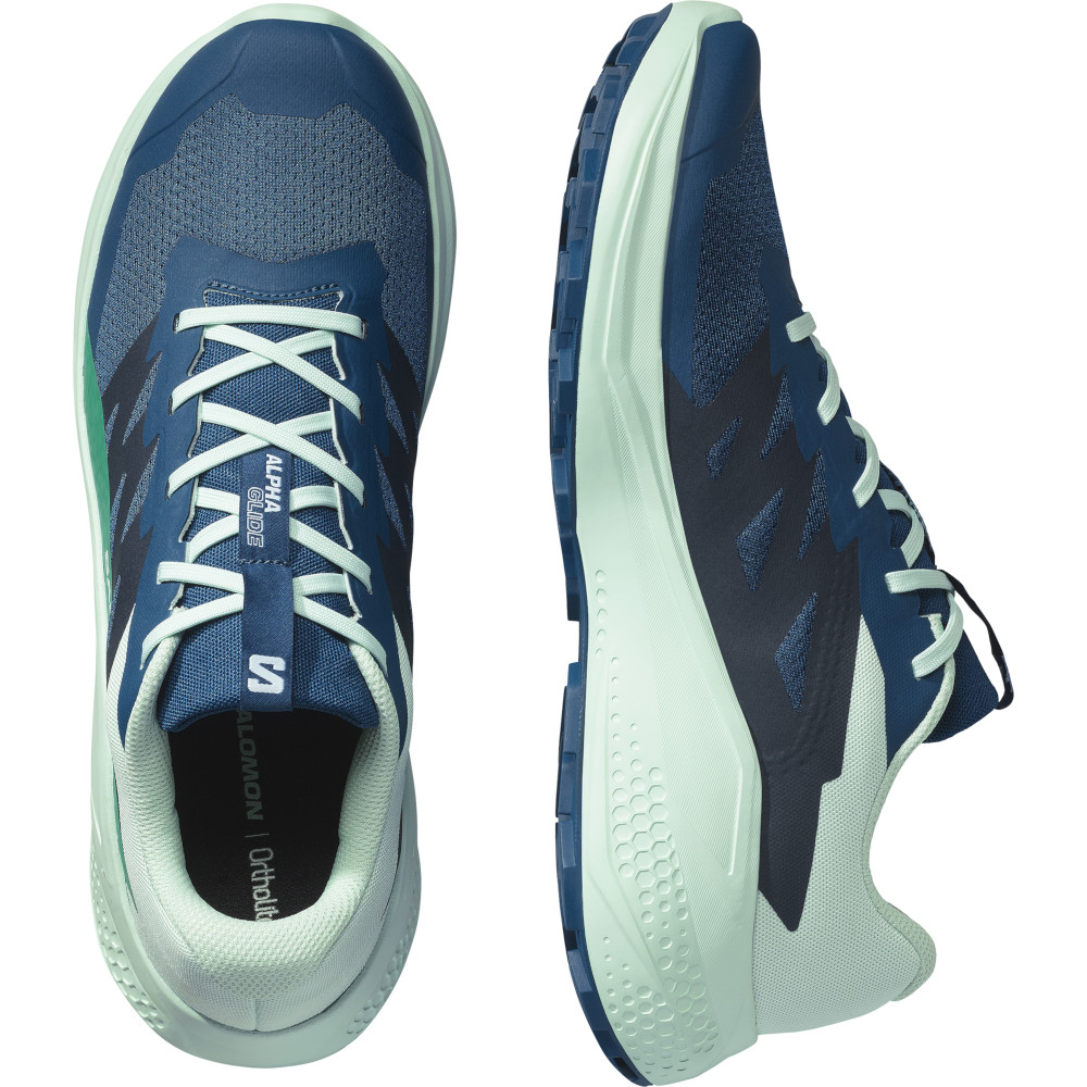 A Salomon Alphaglide egy sokoldalú terepcipő, melyet párnázottsága, kényelme és a különböző terepviszonyokhoz való alkalmazkodóképessége minden kalandra alkalmassá tesz. Kiegyensúlyozott középtalppal és a lábat körülölelő tartással rendelkezik, a felsőrészén pedig „anti-derbis” háló gondoskodik róla, hogy ne kerüljenek a cipődbe kavicsok és egyéb törmelék. Sokoldalú, biztonságos tapadást nyújtó cipő, ami könnyedén alkalmazkodik a legkülönbözőbb trail-ekhez.