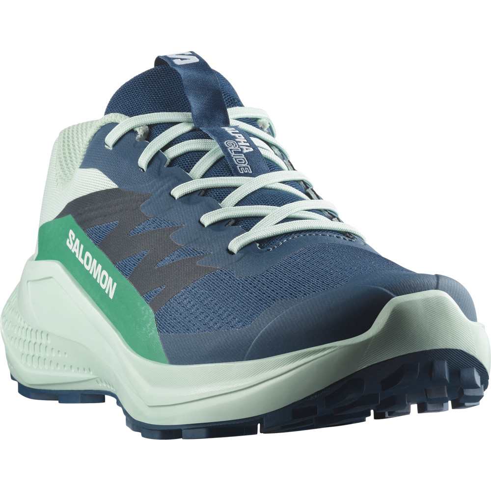 A Salomon Alphaglide egy sokoldalú terepcipő, melyet párnázottsága, kényelme és a különböző terepviszonyokhoz való alkalmazkodóképessége minden kalandra alkalmassá tesz. Kiegyensúlyozott középtalppal és a lábat körülölelő tartással rendelkezik, a felsőrészén pedig „anti-derbis” háló gondoskodik róla, hogy ne kerüljenek a cipődbe kavicsok és egyéb törmelék. Sokoldalú, biztonságos tapadást nyújtó cipő, ami könnyedén alkalmazkodik a legkülönbözőbb trail-ekhez.