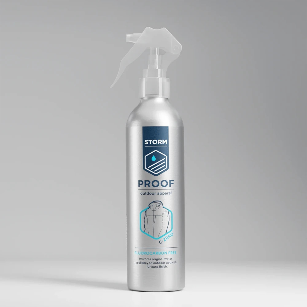 Páratlan sokoldalúság: Forradalmi air cure technológiás Storm Apparel Proofer impregnáló spray. A hátizsákok dörzsölésének kitett vállrész, valamint a kabátok mandzsettái tökéletes példái azoknak a területeknek, melyeken – utókezelés nélkül - leginkább tapasztalható a DWR bevonat károsodása és a teljesítmény csökkenése. Ezt a terméket kifejezetten technikai külsőruházathoz és felszerelésekhez tervezték, ideértve a membránnal ellátott ruházatot is.