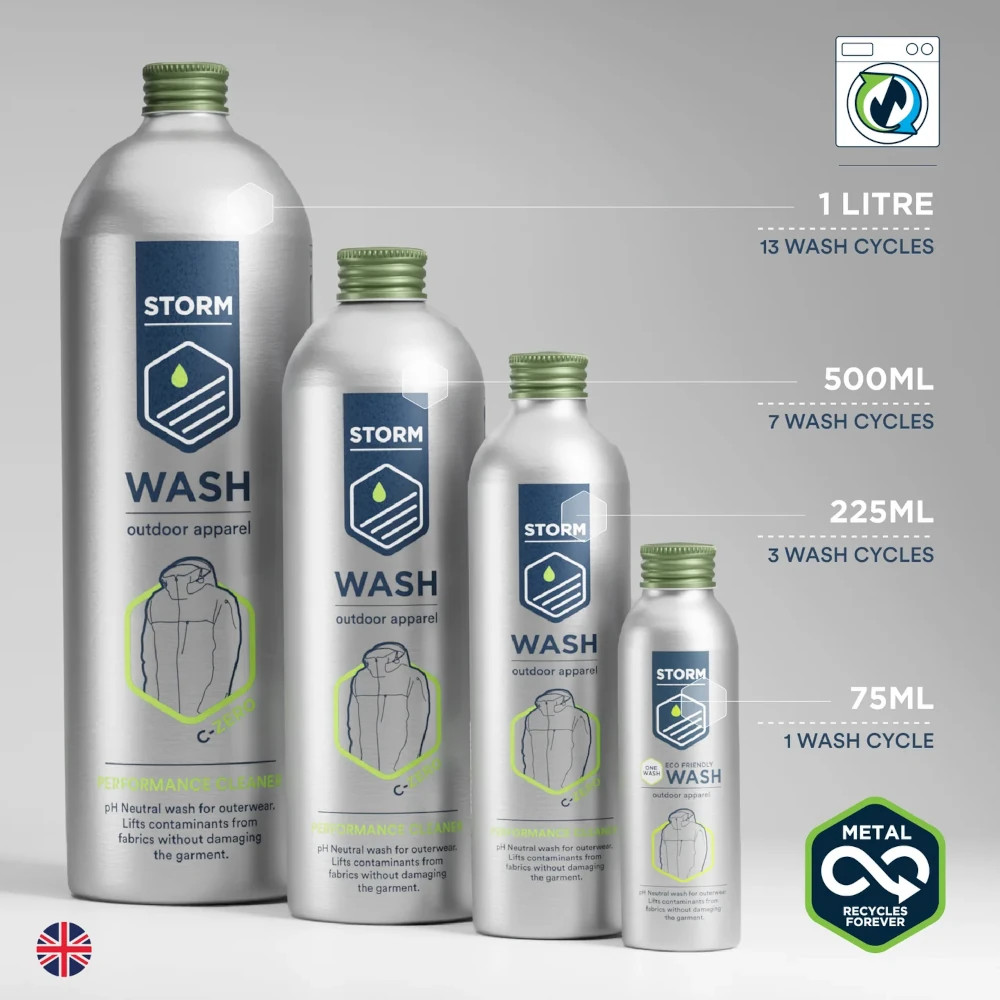 A Storm Apparel Wash tükrözi az eredeti gyártási folyamatokban használt tisztító kémiai összetételét – kifejezetten technikai külsőruházathoz tervezték, ideértve a membránnal ellátott ruházatot is.