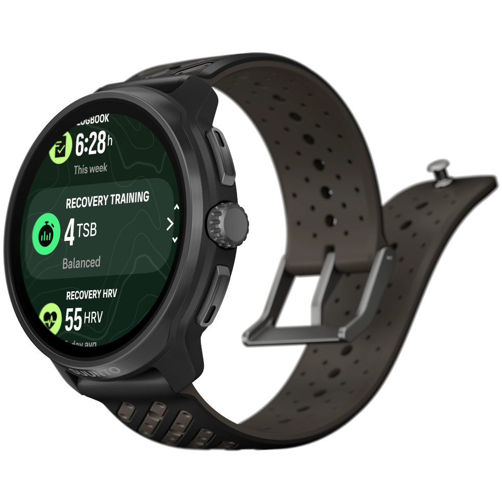 Hosszú távokra hangolt üzemidő: Amikor egy verseny rajtvonalánál állsz, az utolsó dolog, ami miatt aggódni szeretnél, az az órád akkumulátorának üzemideje. A Suunto Race 2 kategóriájának egyik legjobb akkumulátor üzemidejével rendelkezik, ráadásul továbbfejlesztett töltője most még pontosabban illeszkedik az órához.