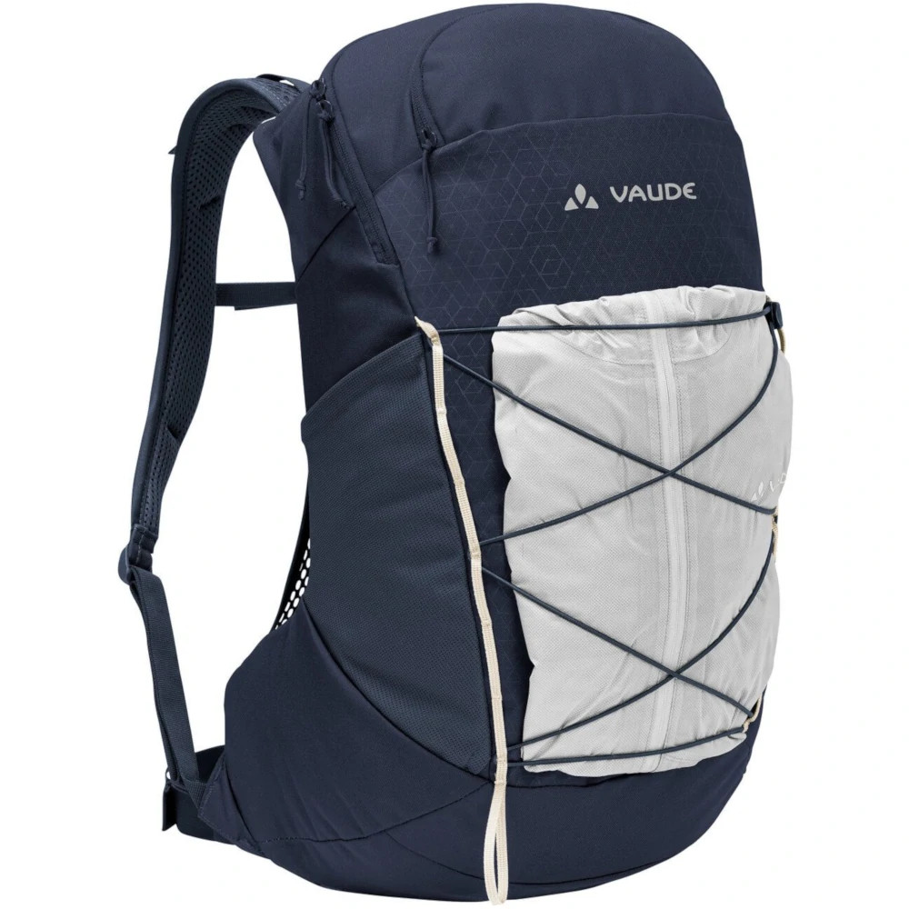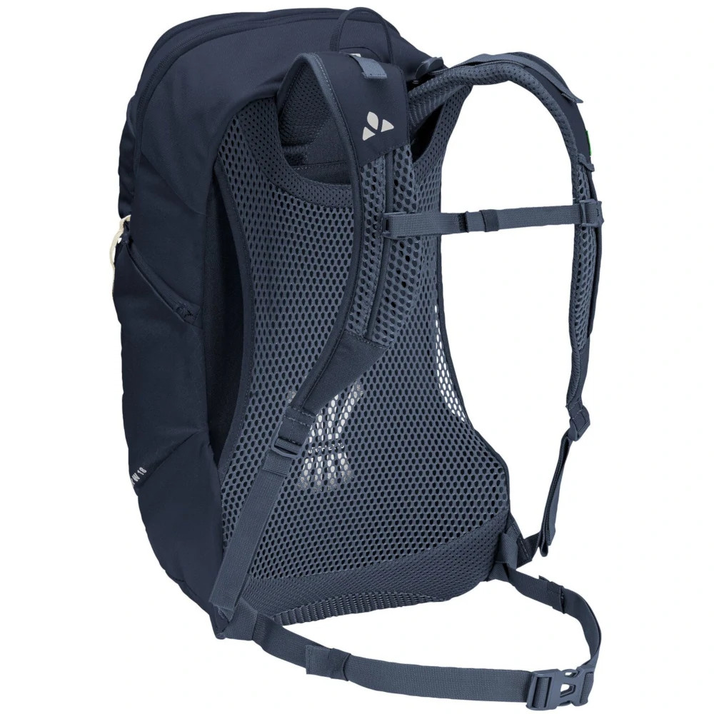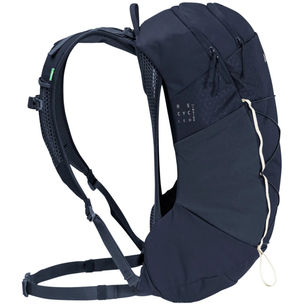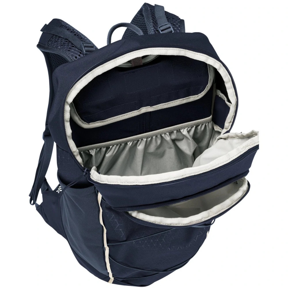 Ha perzselő a meleg vagy nagyon megeröltető a túra a Vaude Wo Agile Air 18 női hátizsák akkor él igazán. Az Aeroflex 3D hátrendszerre egy szellőzőréteget képez a zsák és a hátad között, ami három oldalról is nyitott. Ez lehetővé teszi a levegő szabad áramlását és jelentősen csökkenti a hát túlmelegedését. Tágas főrekeszébe elfér egy esőkabát, csereruha és egy kis eleség. Víztartálynak is találsz benne egy kulön zsebet és kivezető nyílást. A felső kis értéktartó zsebben kényelmesen elfér okostelefonod, napszemüveged és egy kulcstartó gyűrűt is találsz benne. A zák egyik oldalán egy elasztikus zseb kapott helyet a kulacsodnak, míg a másik oldalra egy zipzáros, zárható zseb került. További pakolófelületet ad a gumis háló a táska első oldalán, ahová például hálózsák vagy sisak is tehető. Ennek a hálónak az alsó részén egy kis fehér hurok a túrabot rögzítésében nyújthat segítséget. Az Ergoshape vállpántok a női test idomaira lettek formázva, és kényelmesen szorítás nélkül passzolnak. Belső felületük kellemes puha anyagból készült. Környezettudatos és fenntartható módon gyártották.